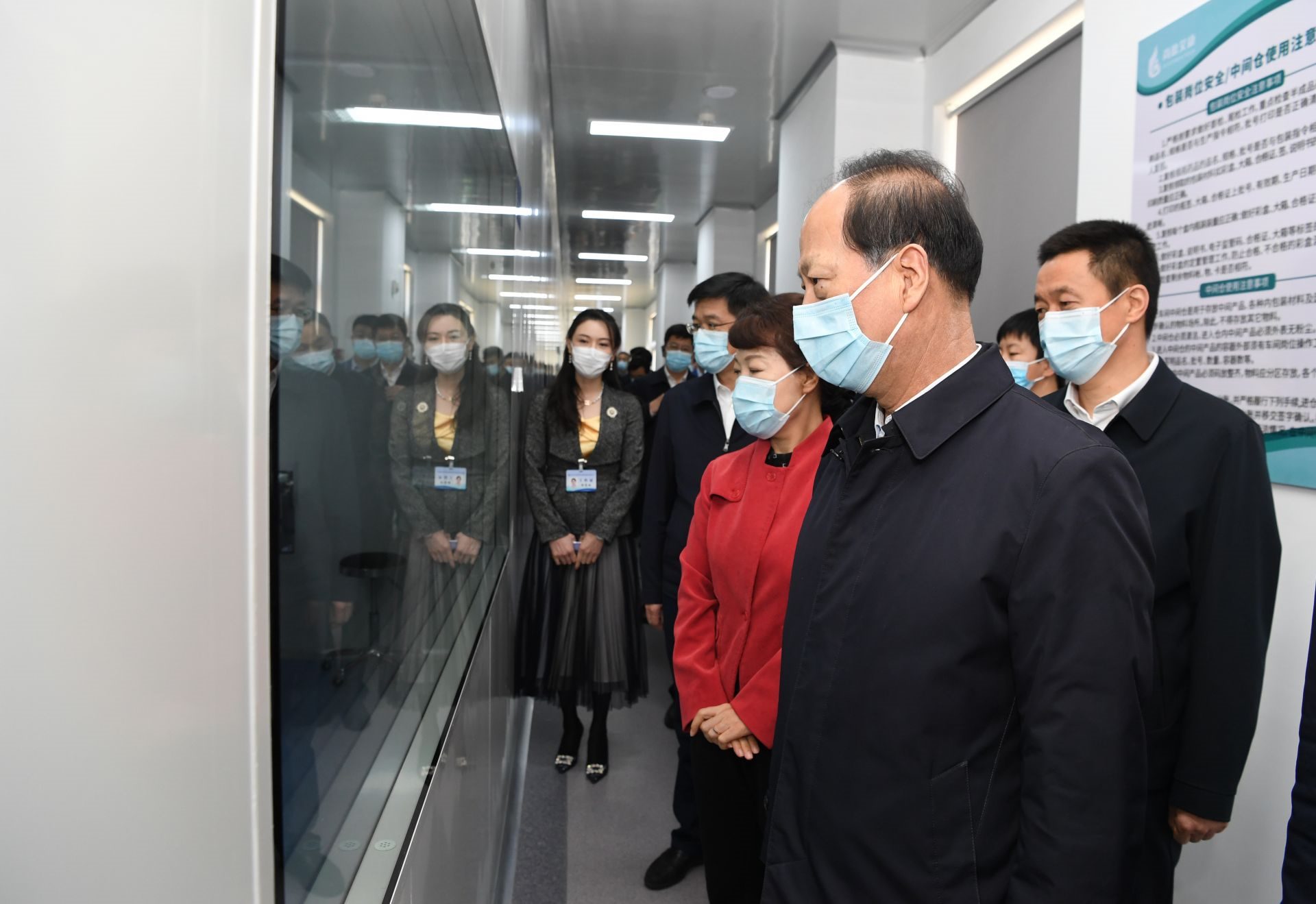 4月8日,自治區(qū)黨委書(shū)記、人大常委會(huì)主任石泰峰,自治區(qū)黨委副書(shū)記、自治區(qū)主席王莉霞,與參加自治區(qū)推進(jìn)高質(zhì)量發(fā)展重大項(xiàng)目建設(shè)動(dòng)員大會(huì)代表一起觀摩尚德艾康藥業(yè)有限公司抗癌藥物研發(fā)及中試基地項(xiàng)目。內(nèi)蒙古日?qǐng)?bào)社融媒體記者 袁永紅 攝