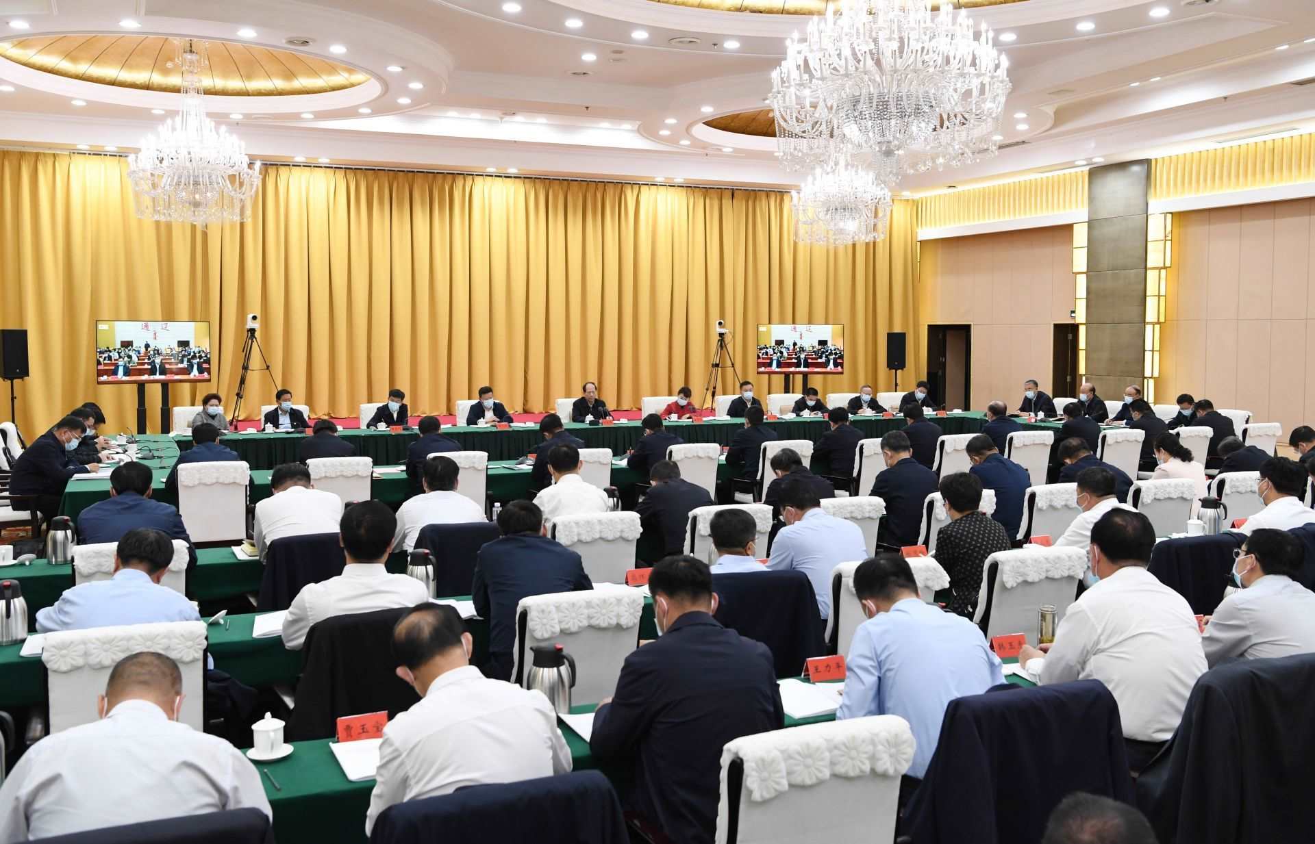 4月8日下午,自治區(qū)黨委書(shū)記、人大常委會(huì)主任石泰峰,自治區(qū)黨委副書(shū)記、自治區(qū)主席王莉霞,在鄂爾多斯出席以視頻會(huì)議形式召開(kāi)的自治區(qū)2022年推進(jìn)高質(zhì)量發(fā)展重大項(xiàng)目建設(shè)座談會(huì)。內(nèi)蒙古日?qǐng)?bào)社融媒體記者 袁永紅 攝