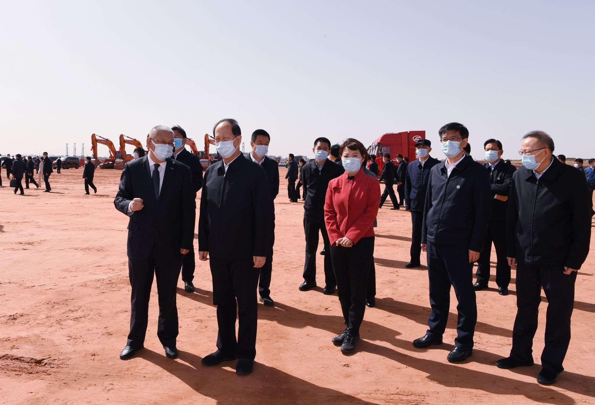 4月8日上午,自治區(qū)黨委書(shū)記、人大常委會(huì)主任石泰峰,自治區(qū)黨委副書(shū)記、自治區(qū)主席王莉霞出席鄂爾多斯市隆基光伏科技有限公司光伏全產(chǎn)業(yè)鏈項(xiàng)目奠基儀式。內(nèi)蒙古日?qǐng)?bào)社融媒體記者 袁永紅 攝