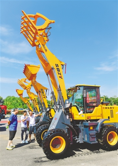 8月13日,在第三十屆內(nèi)蒙古國際農(nóng)業(yè)博覽會上,工作人員向觀眾介紹農(nóng)機產(chǎn)品。記者 王磊 攝