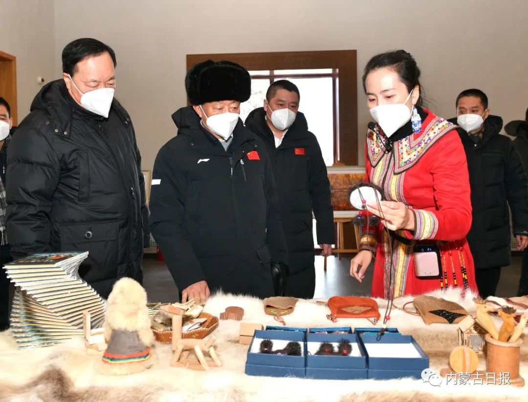 1月26日,自治區(qū)黨委書記、人大常委會(huì)主任孫紹騁來(lái)到呼倫貝爾根河市敖魯古雅鄂溫克民族鄉(xiāng),在非物質(zhì)文化傳承中心,調(diào)研非物質(zhì)文化傳承情況。記者馬建荃攝