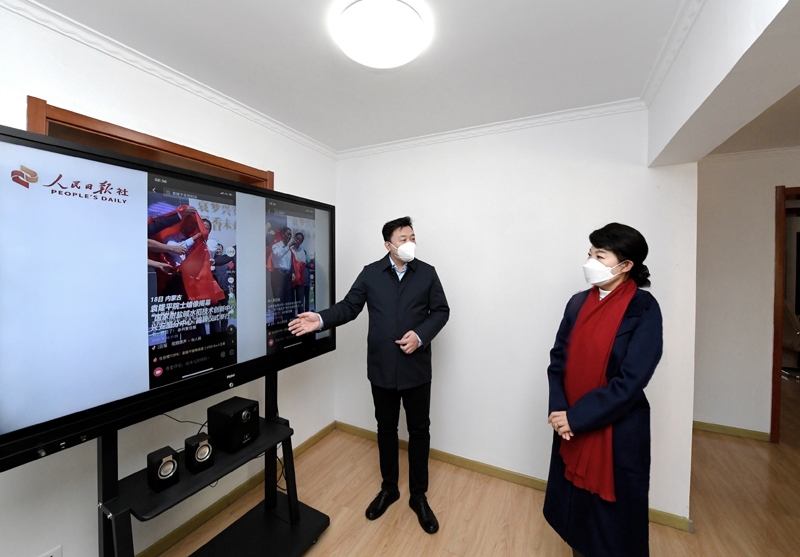 1月28日下午,王莉霞在新華社內(nèi)蒙古分社了解新聞采編、發(fā)稿情況并參觀陳列館。記者韓卿立攝