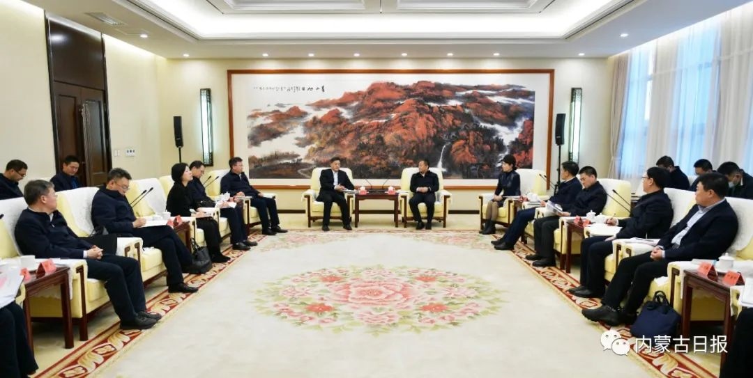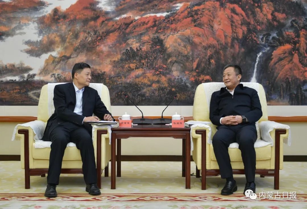2月18日,自治區(qū)黨委書(shū)記孫紹騁,自治區(qū)黨委副書(shū)記、自治區(qū)主席王莉霞在呼和浩特會(huì)見(jiàn)中國(guó)東方電氣集團(tuán)有限公司黨組書(shū)記、董事長(zhǎng)俞培根一行。內(nèi)蒙古日?qǐng)?bào)社融媒體記者 馬建荃攝