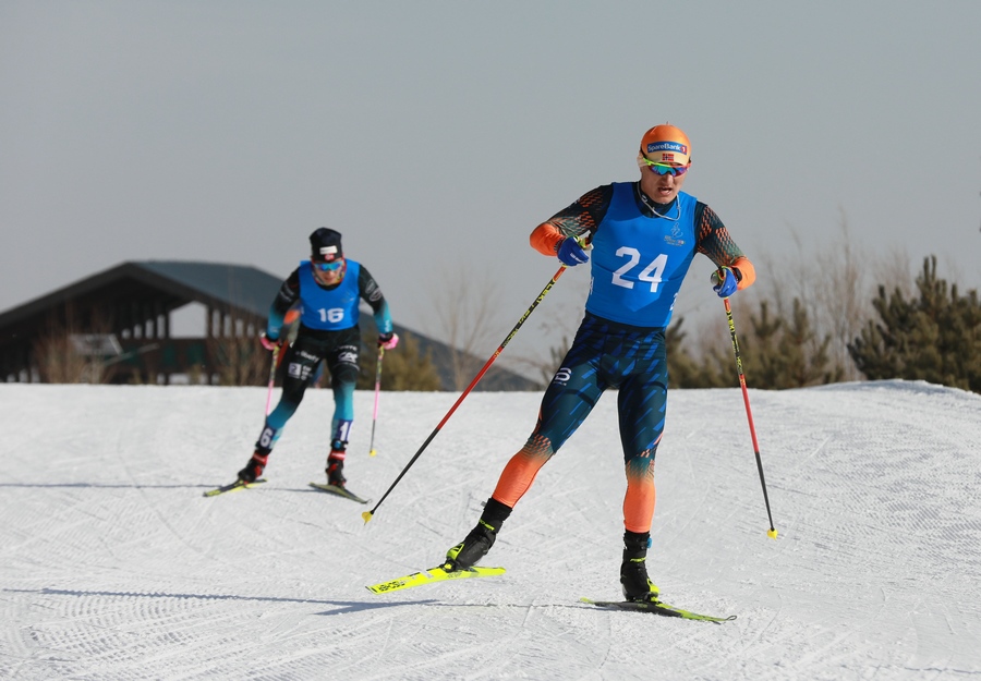 北疆新聞烏蘭察布2月16日電(記者 張楊 王豐)2月16日下午,第十四屆全國冬季運動會越野滑雪公開組男子15公里(間隔出發(fā)自由技術(shù))在烏蘭察布市涼城滑雪場結(jié)束,重慶運動員王強不負眾望,再次獲得冠軍。云南運動員劉榮勝獲得亞軍,山東運動員哈得斯·巴德里汗獲得第三名。