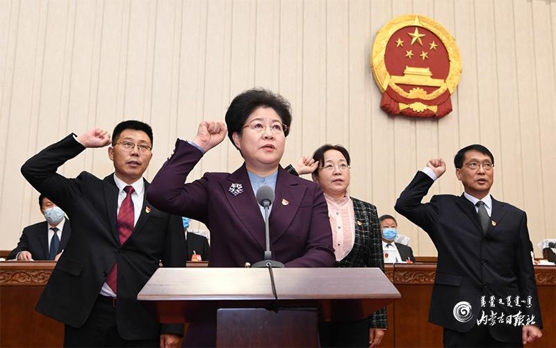 1月20日上午,自治區(qū)十三屆人大常委會(huì)第二十四次會(huì)議舉行了憲法宣誓儀式。自治區(qū)黨委書記、人大常委會(huì)主任石泰峰主持并監(jiān)誓。圖為新任職人員在依法進(jìn)行憲法宣誓。內(nèi)蒙古日報(bào)記者 袁永紅 攝