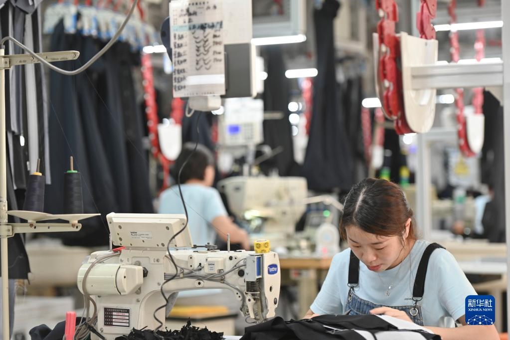在位于福建省泉州市經(jīng)濟(jì)技術(shù)開發(fā)區(qū)的九牧王西褲智能化生產(chǎn)車間,工人在自動(dòng)化西褲吊掛流水線上作業(yè)(2021年7月30日攝)。近年來(lái),泉州市稅務(wù)部門積極落實(shí)減稅降費(fèi),出臺(tái)一系列穩(wěn)定工業(yè)、扶持外貿(mào)、鼓勵(lì)企業(yè)研發(fā)創(chuàng)新的政策,服務(wù)實(shí)體經(jīng)濟(jì)發(fā)展。新華社記者 宋為偉 攝