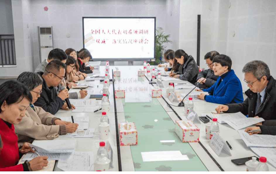 ↑2月24日,在謝家灣學(xué)校,劉希婭與部分家長代表座談交流,收集大家對(duì)“雙減”政策在落地執(zhí)行中的意見和建議。