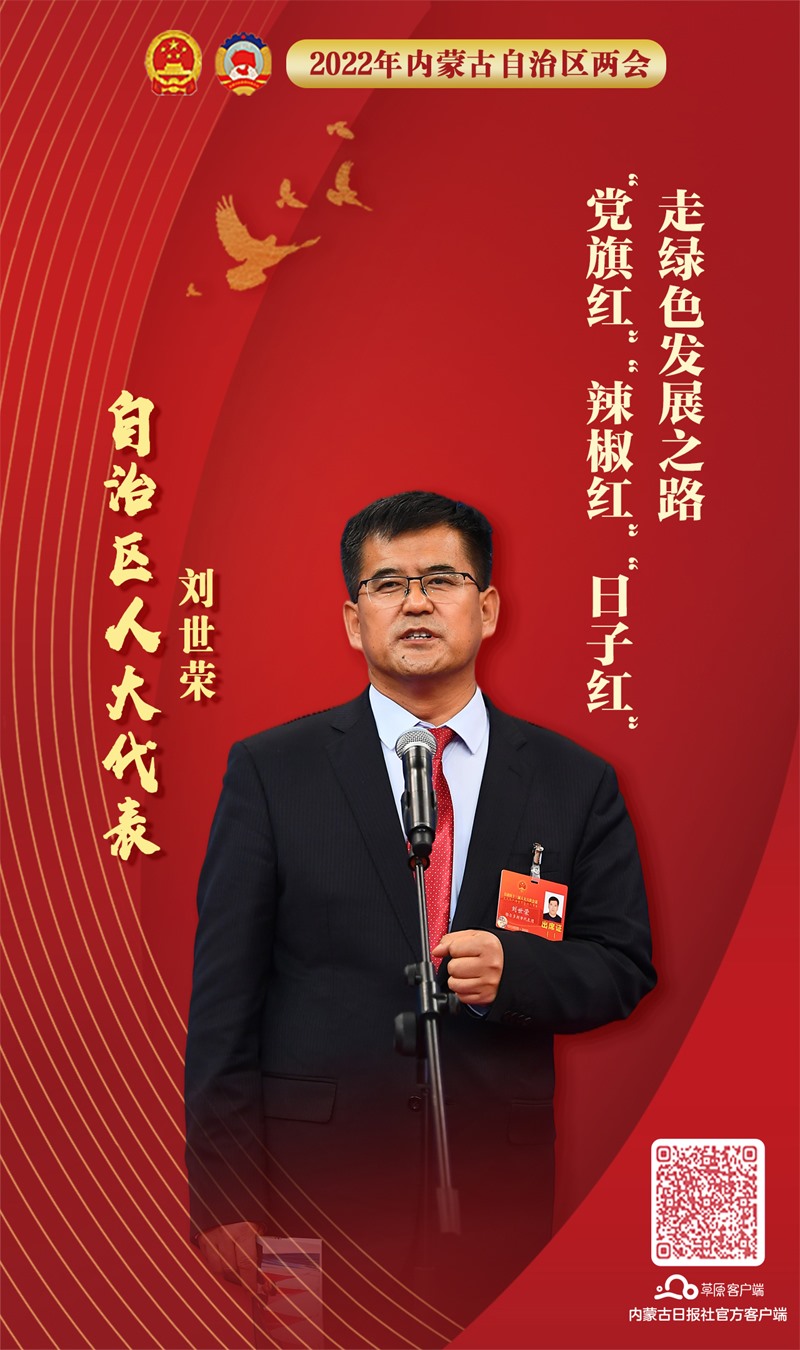 從昔日的沙窩窩到成為如今遠(yuǎn)近聞名的美麗鄉(xiāng)村,自治區(qū)人大代表、鄂爾多斯市達(dá)拉特旗展旦召蘇木道勞村黨支部書(shū)記、村委會(huì)主任劉世榮和大家分享了23年來(lái),道勞村是怎樣推動(dòng)農(nóng)畜產(chǎn)品生產(chǎn)基地優(yōu)質(zhì)高效轉(zhuǎn)型,走出一條符合道勞實(shí)際的綠色發(fā)展之路的。他用“三個(gè)紅、一個(gè)綠”描述了今天的道勞村,即“黨旗紅”“辣椒紅”“日子紅”,走綠色發(fā)展之路。