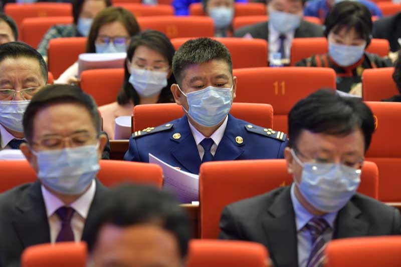 1月21日上午9時,自治區(qū)第十三屆人民代表大會第六次會議在內(nèi)蒙古人民會堂隆重開幕。記者 馬建荃攝