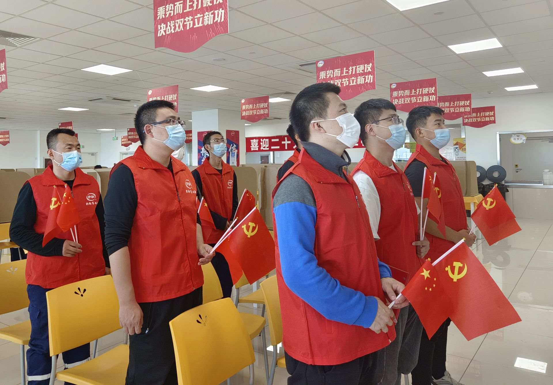 中建三局呼和浩特建設(shè)項目施工人員收看黨的二十大開幕會。曹楨攝