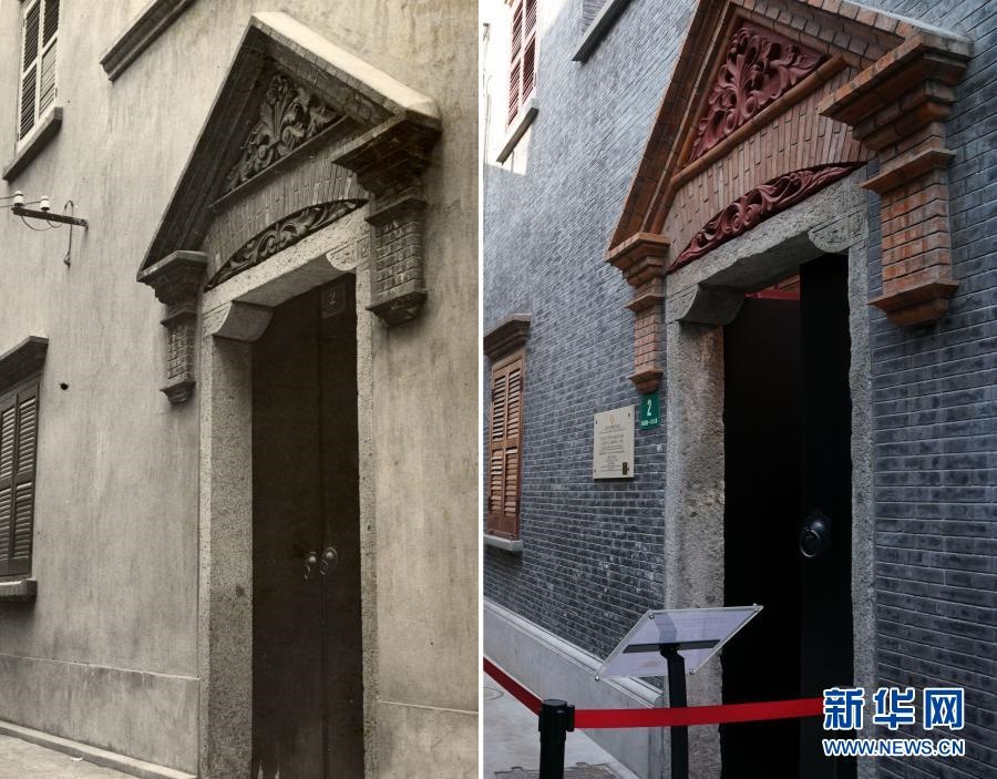 拼版照片:左圖是法租界老漁陽里2號的歷史照片(上海市檔案館供圖);右圖是1月18日拍攝的南昌路100弄2號(新華社記者劉穎攝)。新華社發(fā)