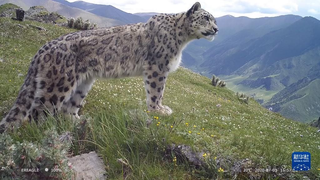 這是三江源國家公園內紅外相機捕捉到的雪豹(2020年7月3日攝)。