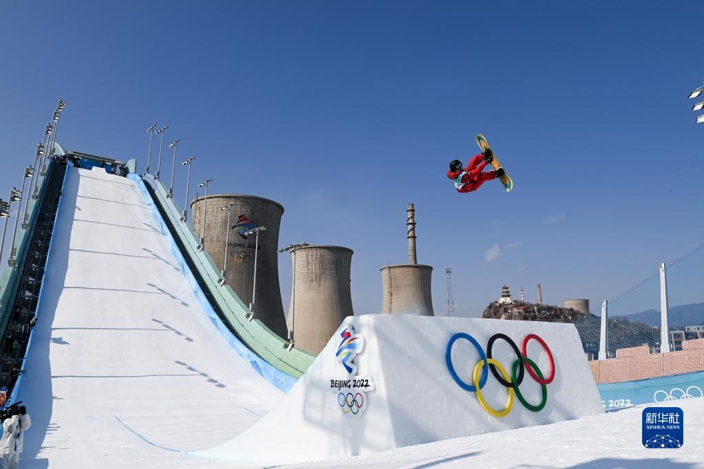 北京2022年冬奧會單板滑雪男子大跳臺決賽在北京首鋼滑雪大跳臺舉行。這是加拿大選手達西·夏普在比賽中(2月15日攝)。