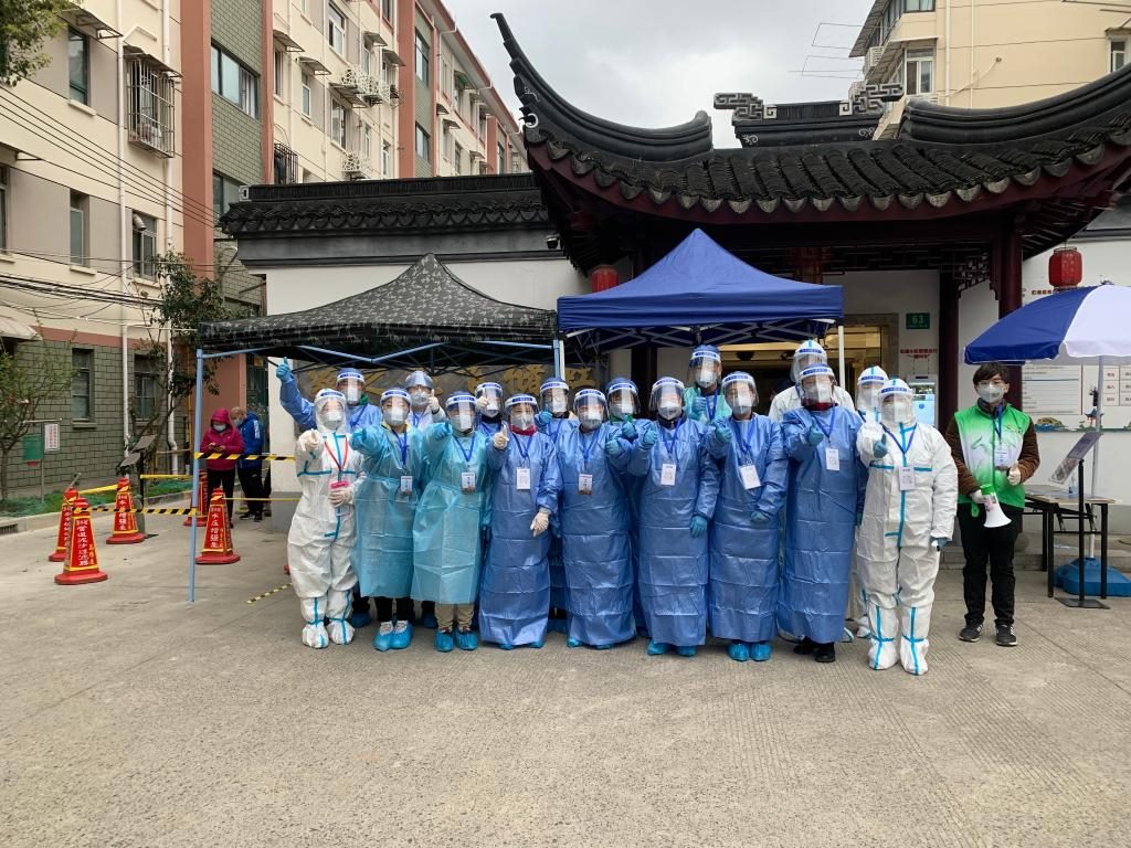 虹儲居民區(qū)核酸檢測采樣點,黨員干部、醫(yī)務工作者以及來自各行各業(yè)的志愿者共同抗疫。受訪單位供圖