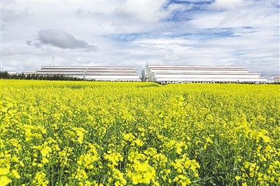 內(nèi)蒙古新巴爾虎右旗烏努格吐山銅鉬礦尾礦庫油菜花田。