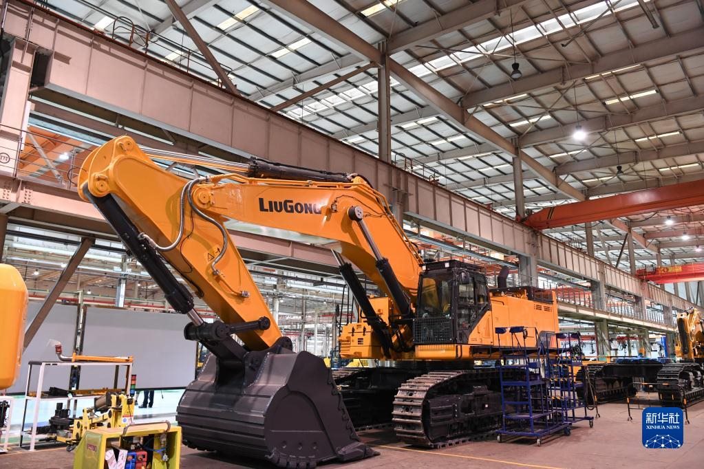 這是廣西柳工集團(tuán)有限公司生產(chǎn)廠房內(nèi)正在組裝的機(jī)械(2021年4月26日攝)。新華社記者 曹祎銘 攝
