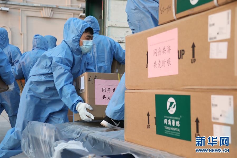 當(dāng)日,國(guó)家衛(wèi)生健康委從華中科技大學(xué)同濟(jì)醫(yī)學(xué)院附屬協(xié)和醫(yī)院、附屬同濟(jì)醫(yī)院調(diào)撥的醫(yī)療物資運(yùn)抵滿洲里市。 新華社記者 鄒儉樸 攝