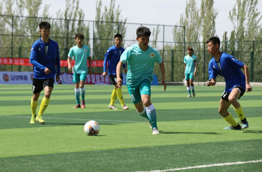 5月10日-17日,2021年內(nèi)蒙古自治區(qū)青少年足球聯(lián)賽暨青少年足球錦標(biāo)賽在內(nèi)蒙古師范大學(xué)足球?qū)W院舉行。此次比賽,共有來自全區(qū)各盟市的31支代表隊(duì)參賽,各代表隊(duì)以盟市為單位組隊(duì)報(bào)名,通過比賽,將進(jìn)一步探索主客場聯(lián)賽賽制,檢驗(yàn)各地區(qū)足球青訓(xùn)體系建設(shè)成效,活躍校園足球文化,以期發(fā)現(xiàn)和選拔更多優(yōu)秀足球運(yùn)動(dòng)員。圖為比賽揭幕戰(zhàn)現(xiàn)場,烏海代表隊(duì)對陣鄂爾多斯代表隊(duì)。